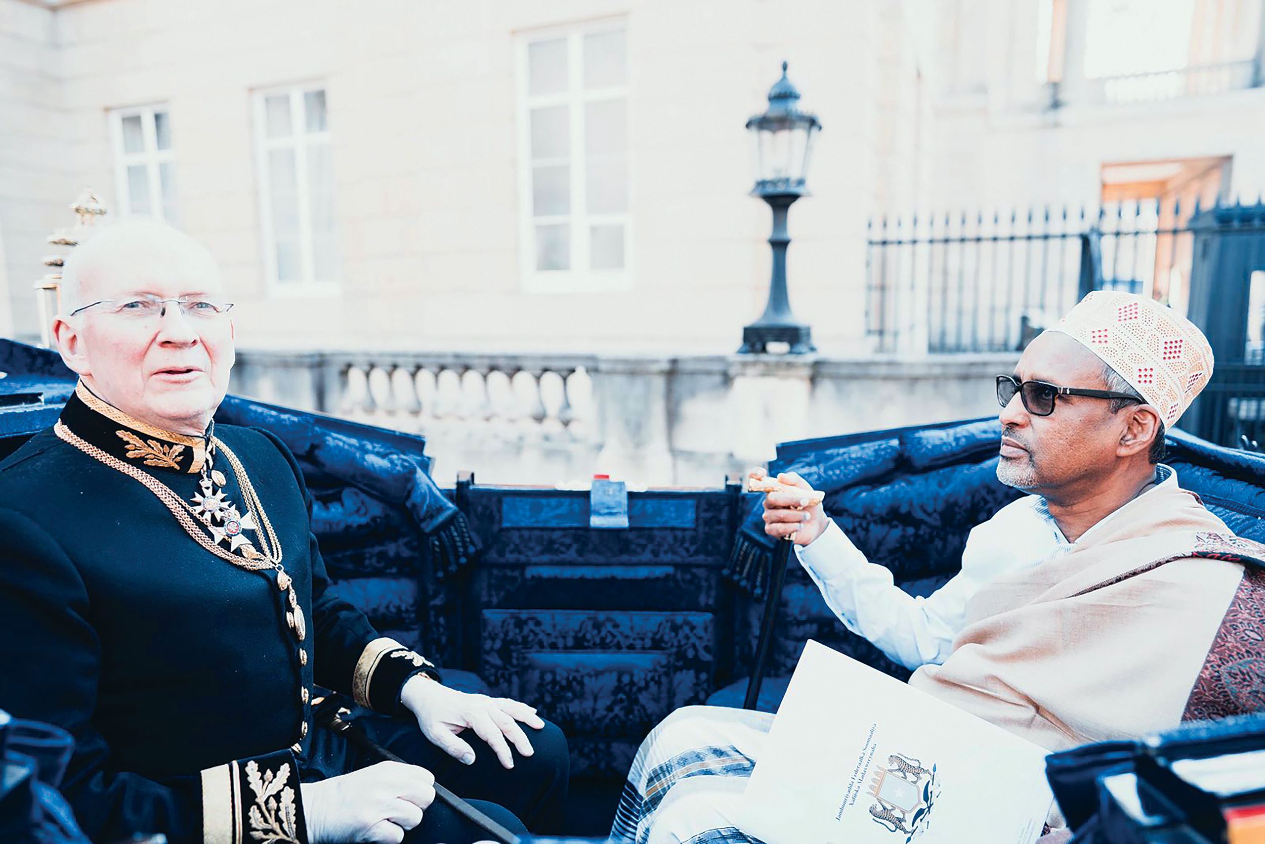 Ambassador Hashi with Marshal of the Diplomatic Corps Alistair Harrison CMG CVO on their way to Buckingham Palace