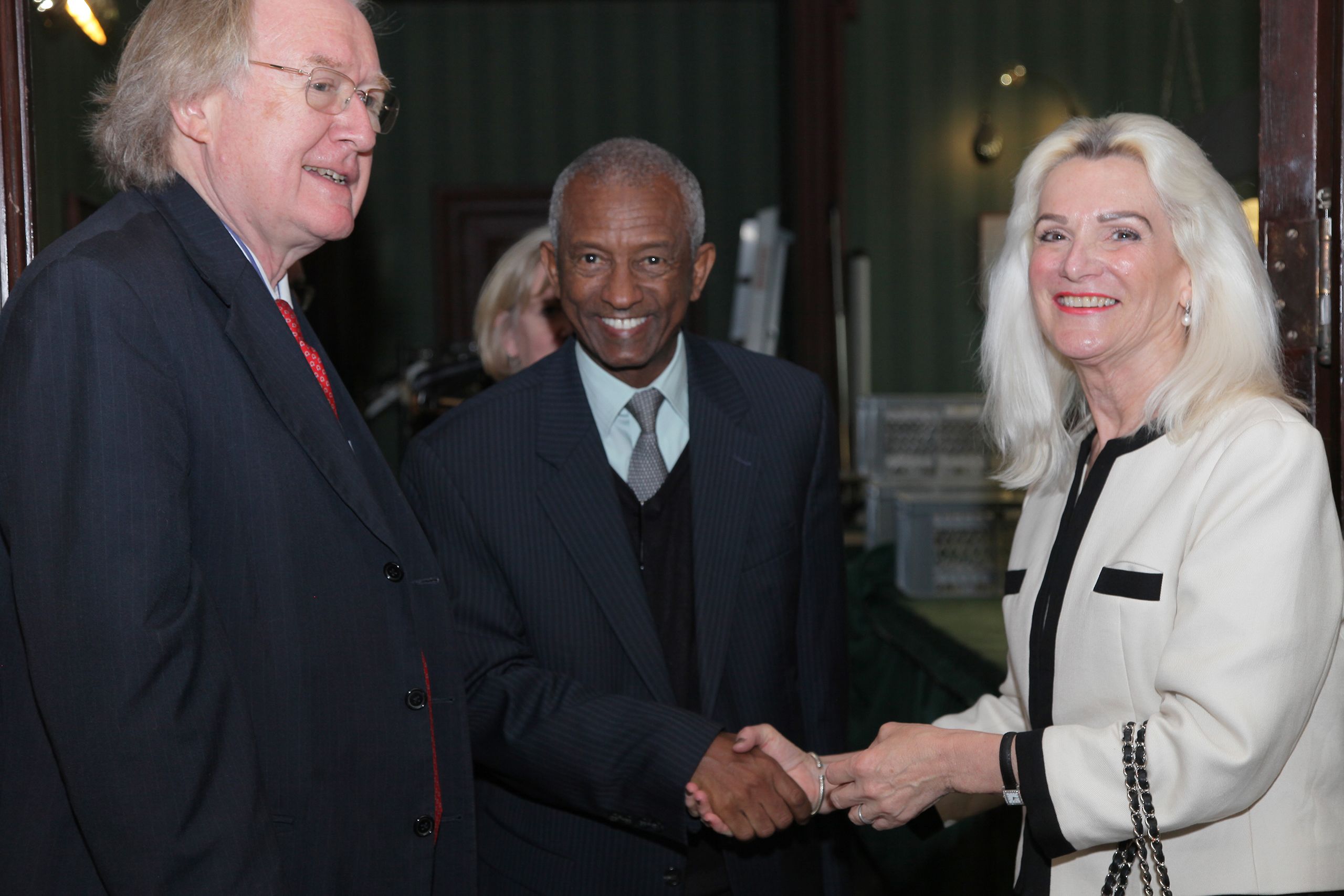 The host and hostess greet the Ambassador of Eritrea Estifanos Habtemariam Ghebreyesus