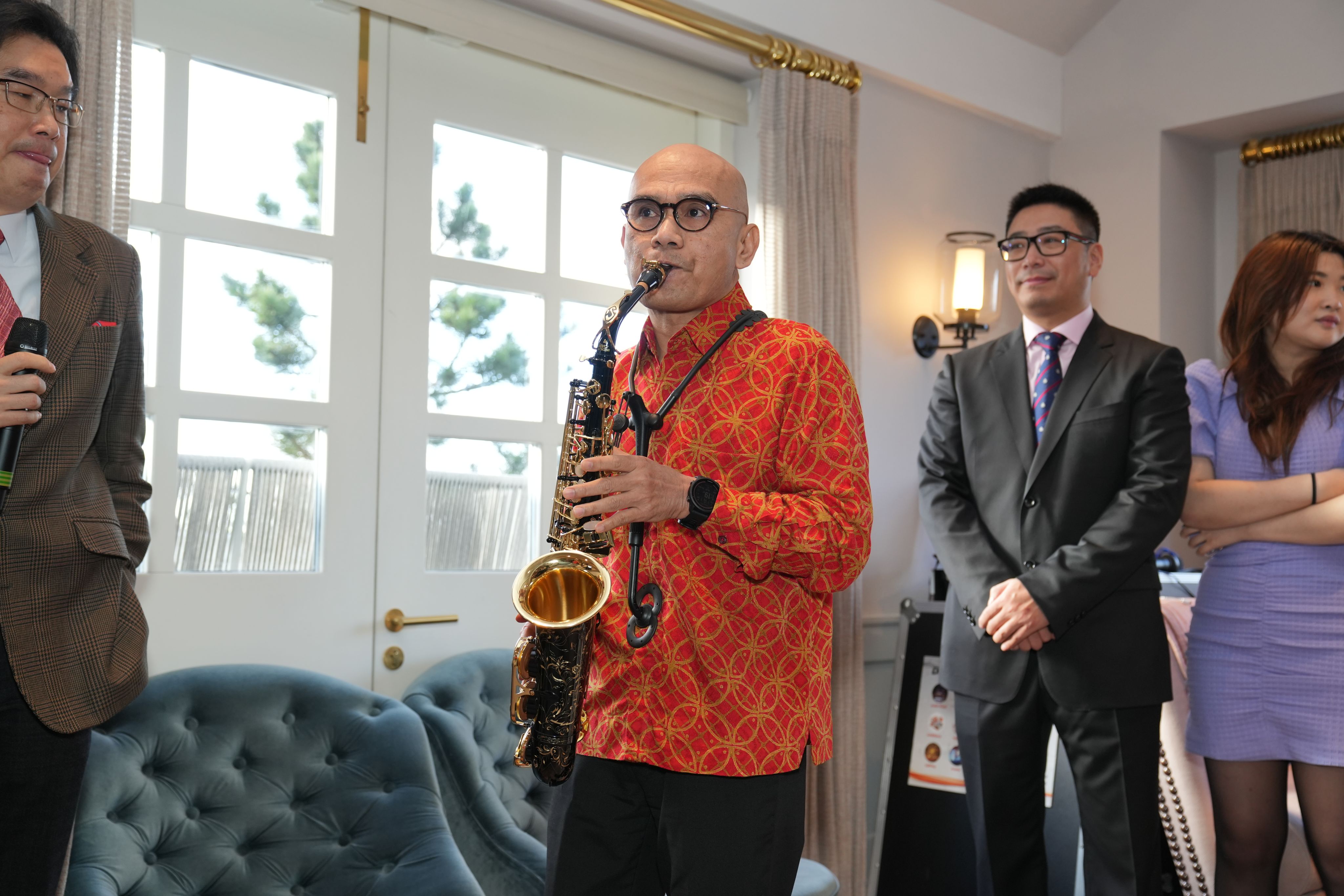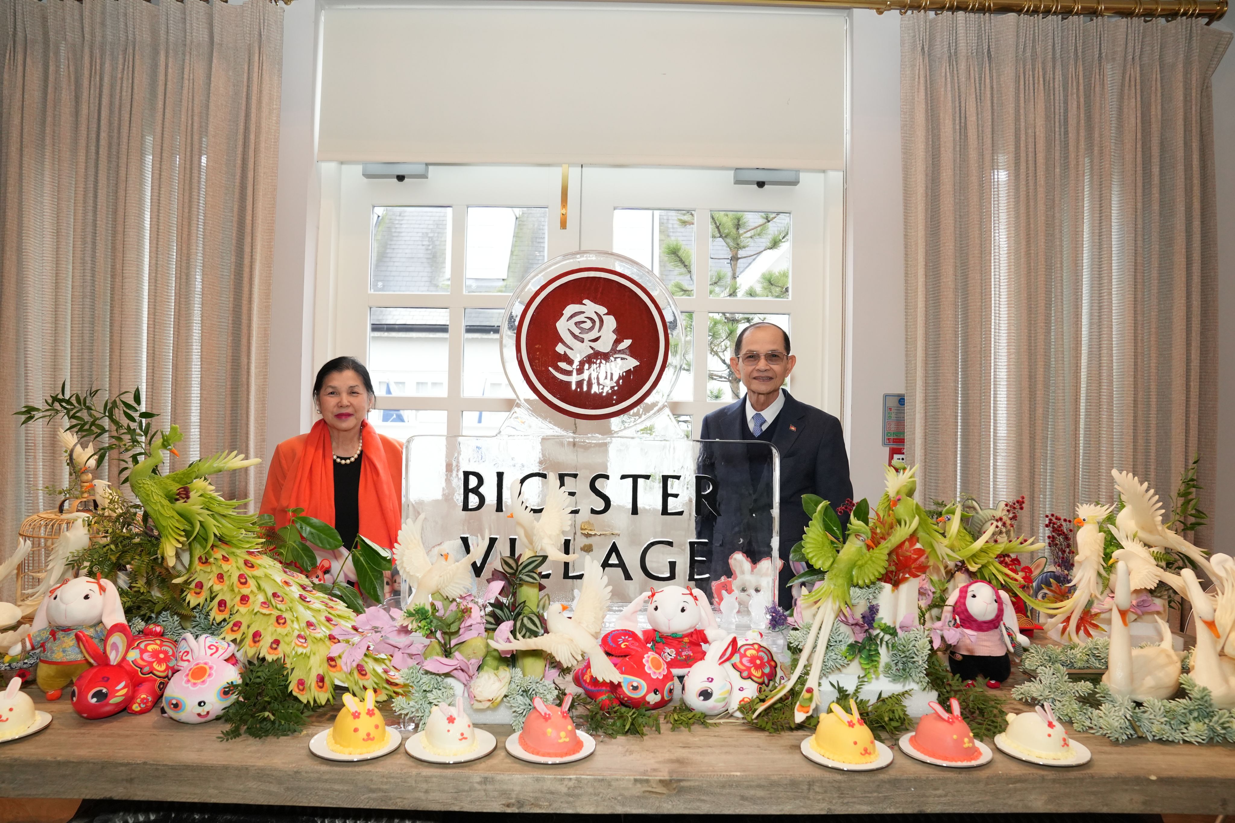 Guests were treated to delicious dim sum, rabbit shaped cream cakes, and elaborate food carvings from celebrity chef, Master Frank Feng who is known for being lead chef at various state banquets around the world. There was also a unique performance of the dramatic Chinese art of bian lian (“changing face”), which originates in Sichuan opera. British Olympic athlete Joe Choong MBE was on hand to tell guests about his assent to winning gold at Tokyo 2020, and gave much credit to his Chinese and Malaysian heritage. Indonesian Ambassador Dr Desra Percaya brought the house down with his performance on the saxophone, while Meng Yi, Managing Director of HSBC Greater China, sang alongside him. Guests enjoying the entertainment included Lord Lieutenant of Oxfordshire Marjorie Glasgow BEM, and High Sheriff of Oxfordshire Mark Beard.