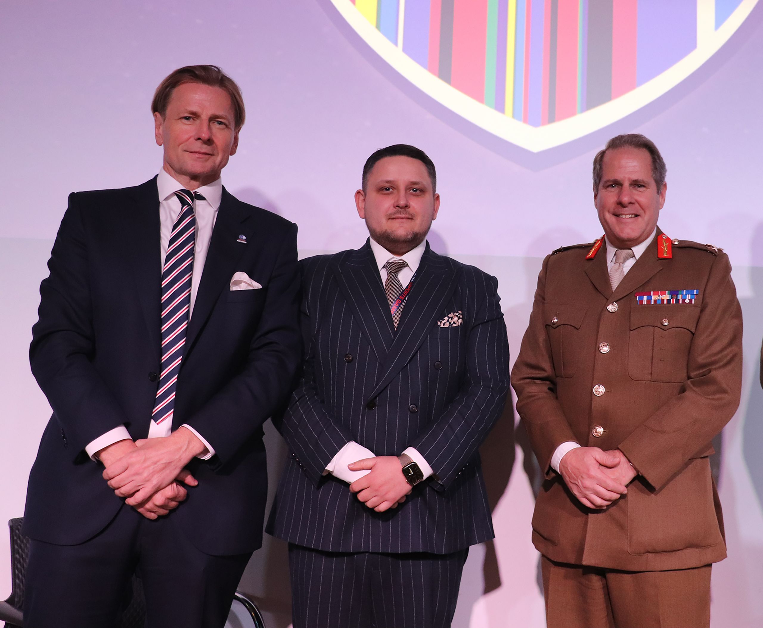 President of British Esports Chester King, Oli Waghorn (BAE Systems) and Deputy Commander Cyber and Specialist Operations Command Lt General Sir Tom Copinger-Symes © Koty King and British Esports