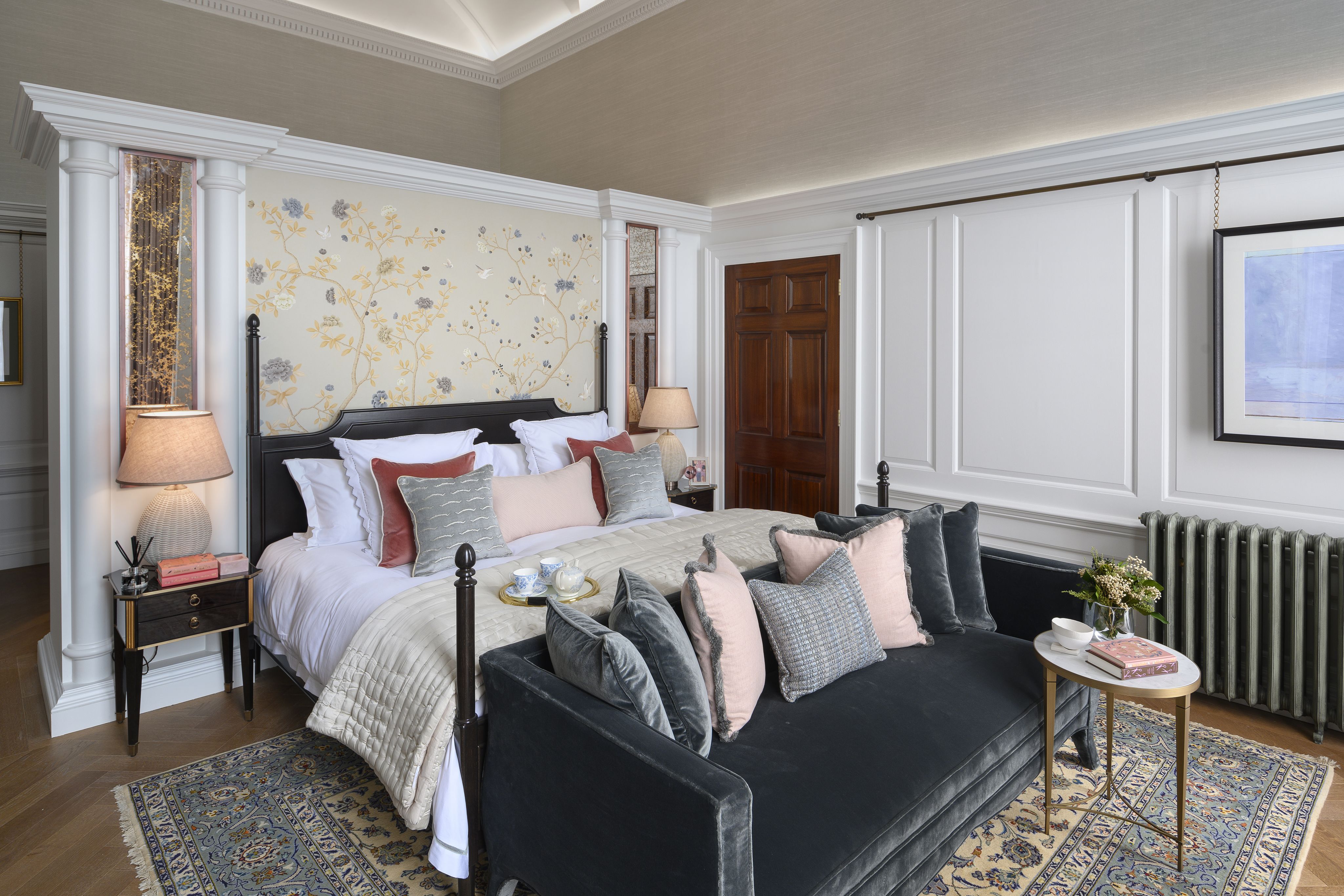 Throughout the apartment’s restoration, St Edward commissioned master artisans to meticulously restore and, in some cases, delicately replicate many of the 1920s features. Intricately cut architraves, ornate decorative ceiling plasterwork and cornicing have all been painstakingly repaired. The building’s original panelling can be seen in the kitchen (kitted out with Gagganau appliances no less) and dining room. Secretaries’ offices and postal messenger rooms have been repurposed as equally impressive bedrooms and bathrooms. In the master bedroom, a unique vaulted ceiling provides quite a sense of grandeur.