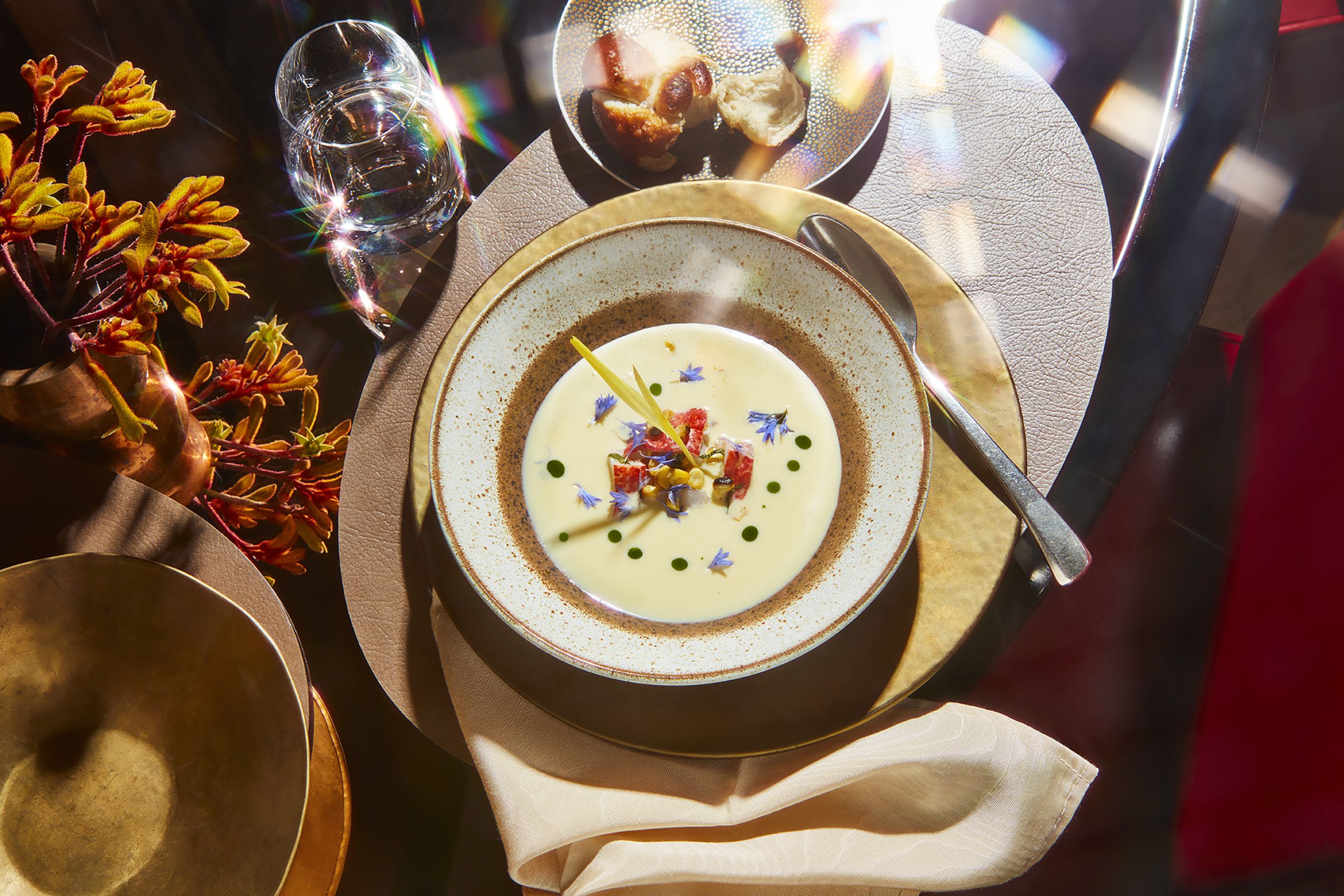 Over a decade on, this sleek, art deco building with a bold metallic fin facade is still a sight to behold on approach from Park Lane. I was delighted to have an opportunity to revisit CUT, especially as it recently appointed Elliott Grover as executive chef to work alongside Wolfgang Puck. Having established his career working within Caprice Holdings, Hix Soho, The Ned, and Duck & Waffle, Grover has a strong knowledge of seasonal produce, and his menu celebrates locally sourced ingredients, taking inspiration from his upbringing in Cornwall.